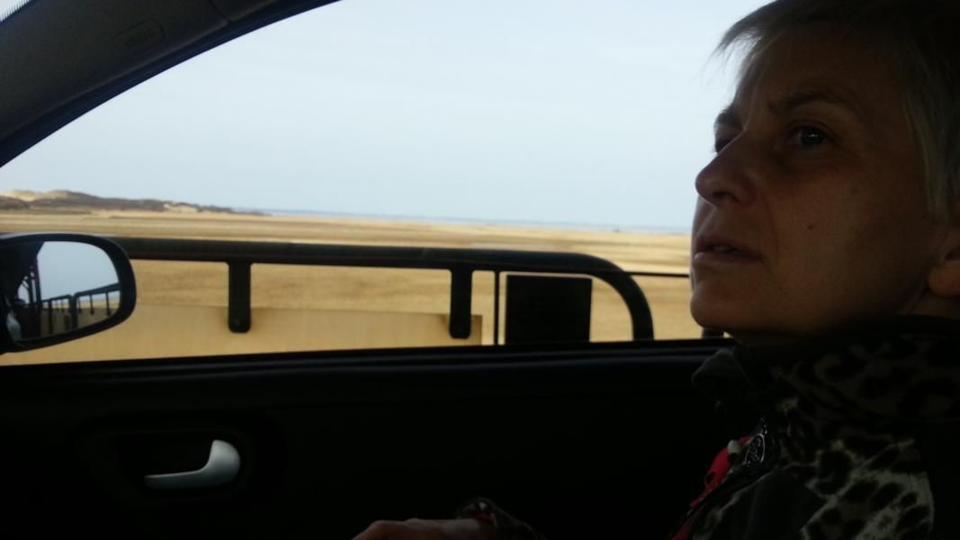 Betina mit ihrem "alten" Opel musste da aber durch. Fahrschule da, wo andere sich erholen... und Autobahnerfahrungen sammeln... .