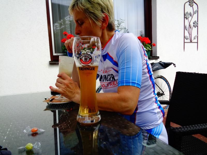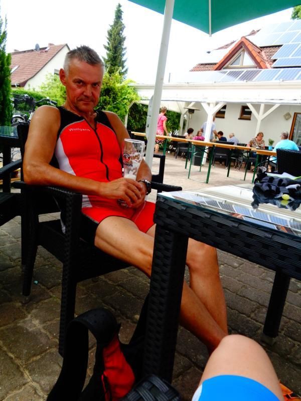 Für Betina war es ihre erste lange Ausfahrt. 5:48 Stunden in einer Durchschnittsgeschwindigkeit von 25,8 Km/h. Das hört sich nicht berauschend an, aber die Strecke hatte lange Anstiege, der Wind und die Hitze von fast 30 Grad... . Mein Kalorienverlust lag um fast 100 weniger als bei Betina. 1.467Kalorien...wers glaubt! Die Waage hat zum ersten Mal nach Jahren wieder eine 69 angezeigt. Etwas wenig, aber erklärbar durch den Wasserverlust.