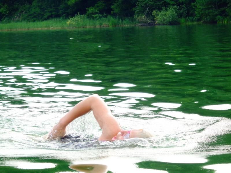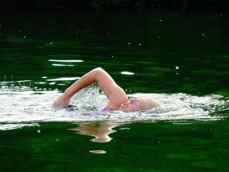 Betina wuchs über sich hinaus. Über 2,5 Km? Kraulen. Am Ende war sie total fertig aber auch stolz auf ihre Leistung Daumen nach oben.