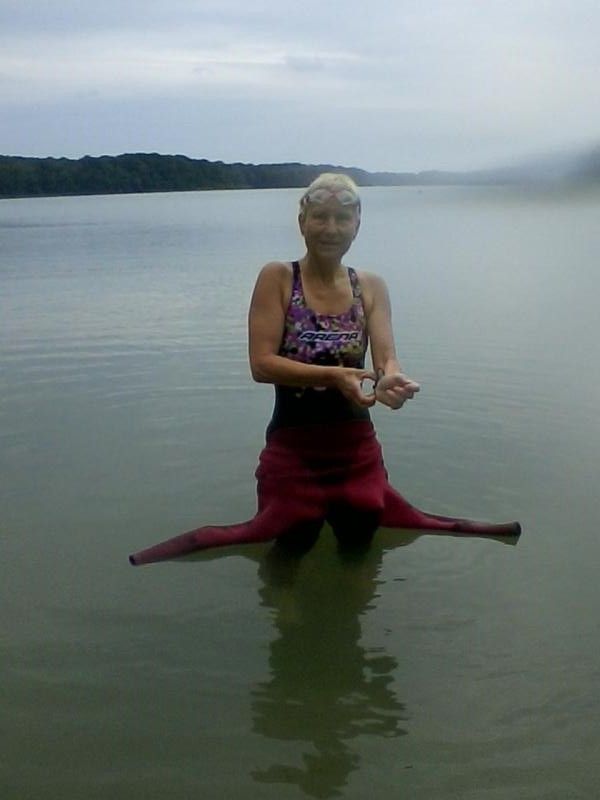 Betina hatte zum Glück ihren Neo mit. Ohne Schutz zu schwimmen, wäre zu kalt geworden.