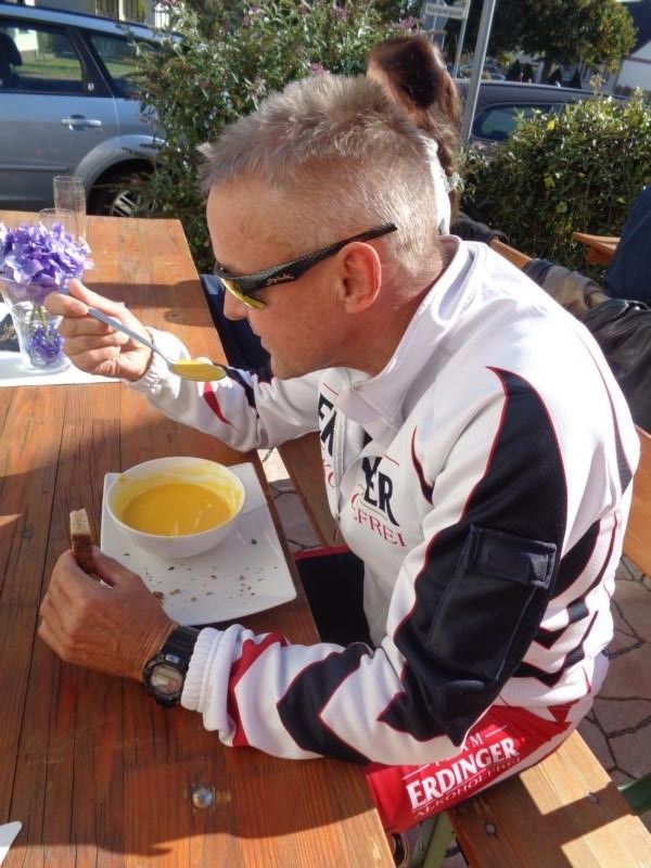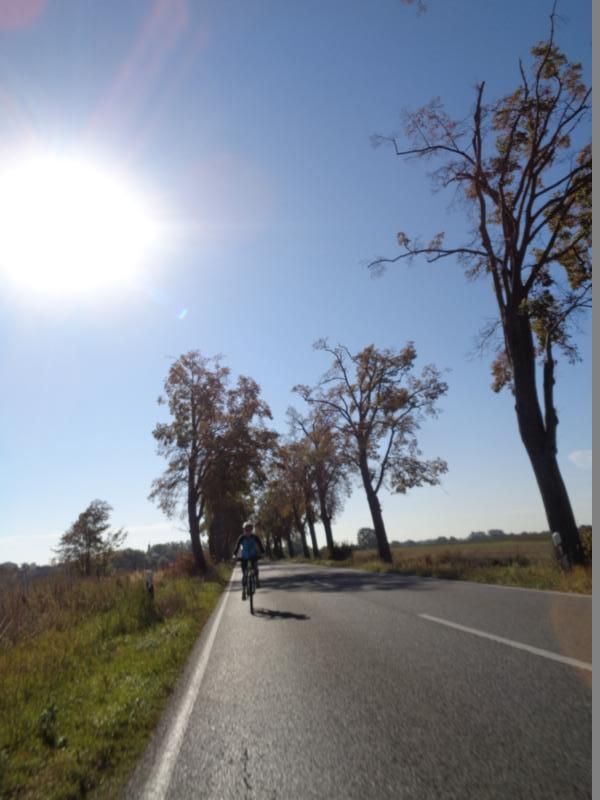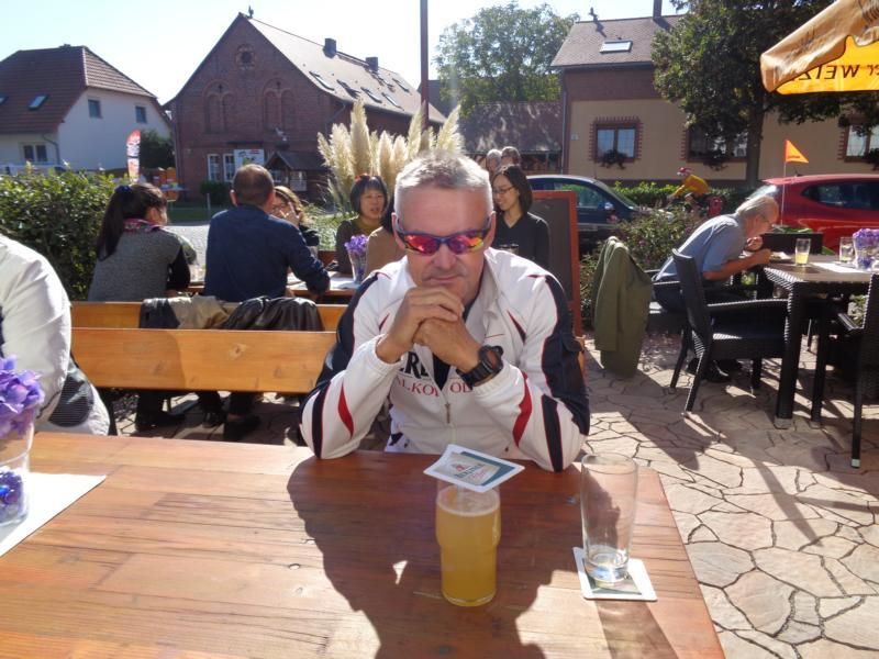 Also blieb es beim Kürbissuppe schlürfen. Von da aus die kürzeste Strecke zur B5 nach Berge über Linum und beim Italiener noch mal eine Eisbombe verdrücken. Vor Brieselang waren es für mich nur noch 4 Km, Betina hatte wohl noch mehr als 13 Km vor sich.