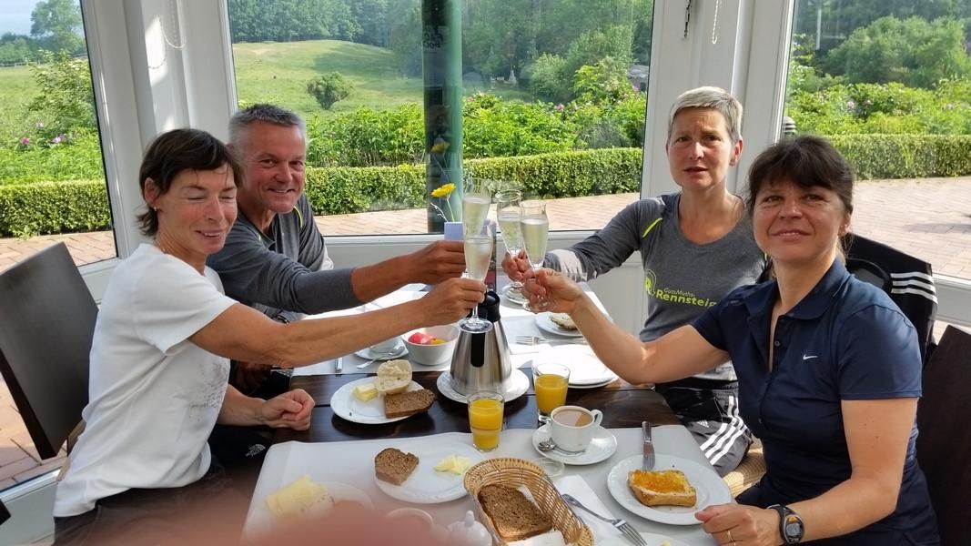 Der Tag begann mit einem Geburtstagssektfrühstück und freudiger Stimmung, weil wir unfallfrei das Ziel erreicht hatten.