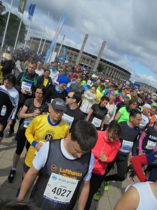 Nun ja, es wurde schwer für jeden von uns. Wir waren zwar noch gemeinsam am Start, aber dann sahen wir uns erst im Stadion wieder. Bis ca.2 Km hatte ich Probleme die Füße richtig auf ein Tempo einzustellen. Auch war ich ausgekühlt. Wie sich im Nachhinein herausstelle, ging der Puls bis 160 Schläge/Min hoch.