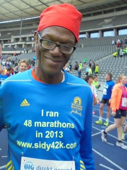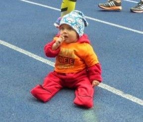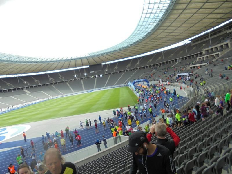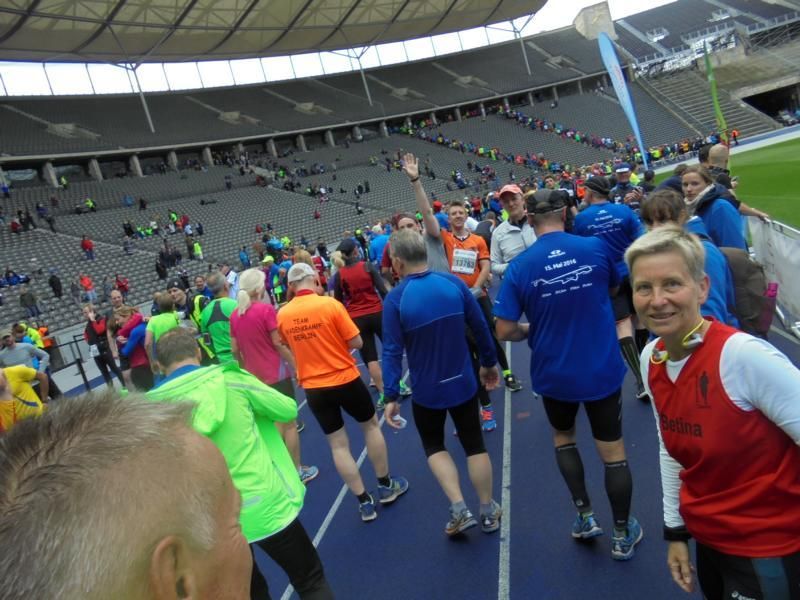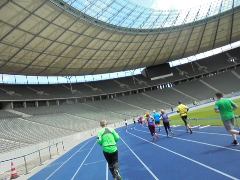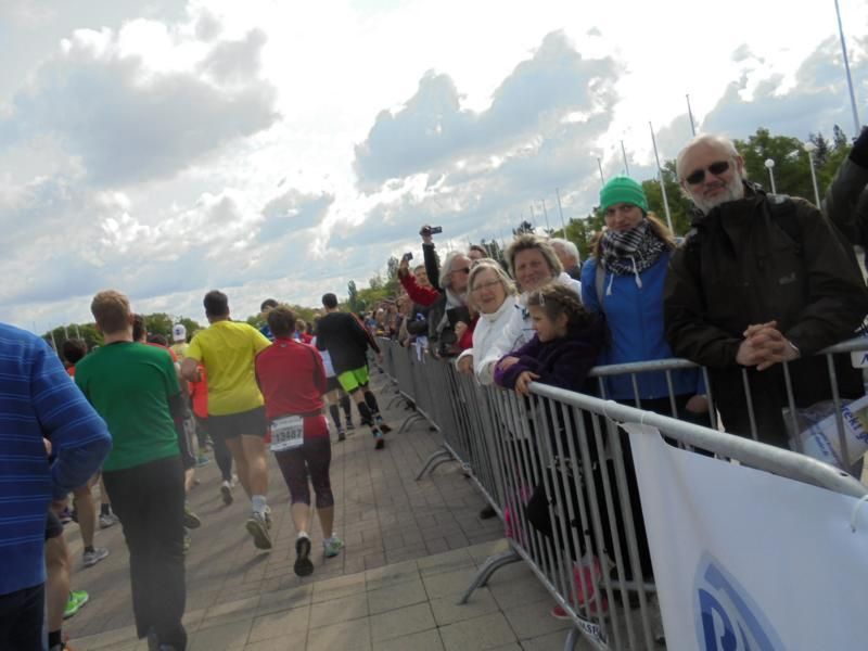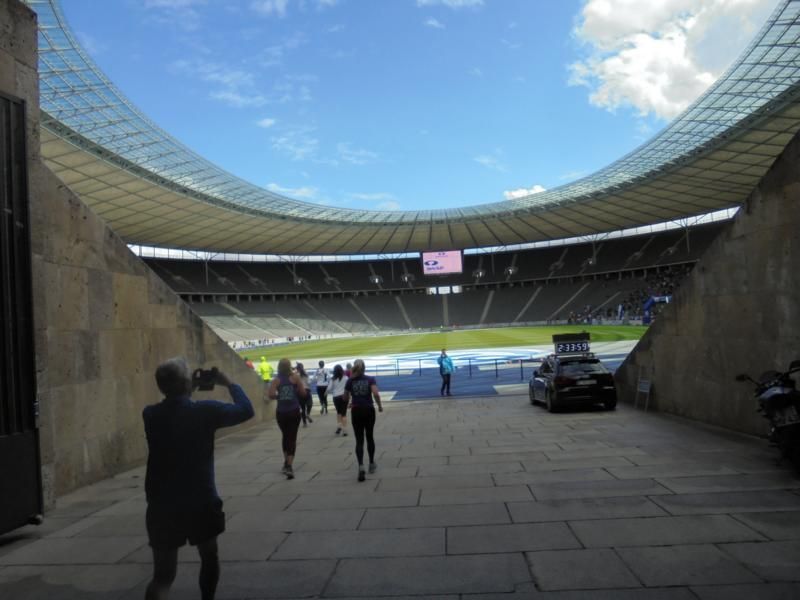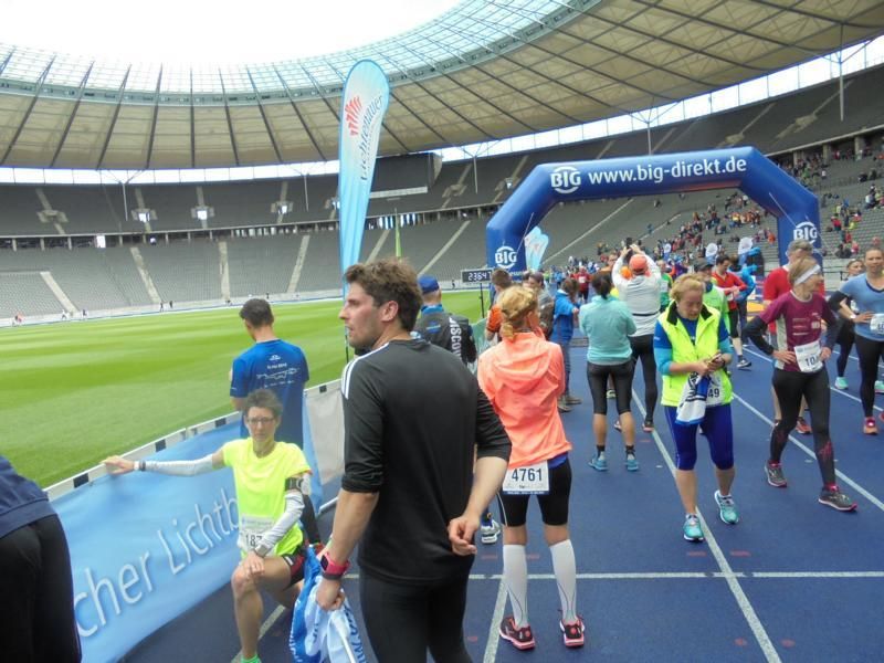 Der Einlauf in das Stadion ist immer sehr emotional. Im Ziel! Betina hatte sich einen Vorsprung erkämpft. Uwe wird immer schneller.Ihr Zeh hat auch mitgespielt.