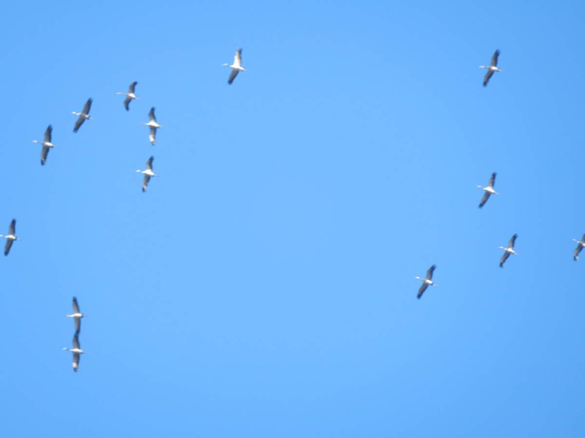 Gerade war ich mit einigen Aufräumarbeiten fertig, die Sonne meinte es noch einmal gut, da kamen gegen 11.00 Uhr zig tausende Kraniche angeflogen. Alles stimmte. Die Flugrichtung nach Süden, das tolle Wetter mit Luftströmung genau da hin. Das animierte auch mich alles stehn und liegen zu lassen. Ab auf mein MTB und in die Döberitzer Heide.