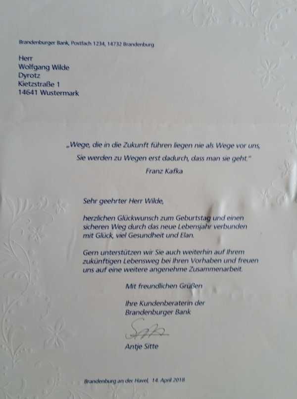 Meine Bank, wird wohl wegen der guten Zusammenarbeit, mein Sponsor sein.