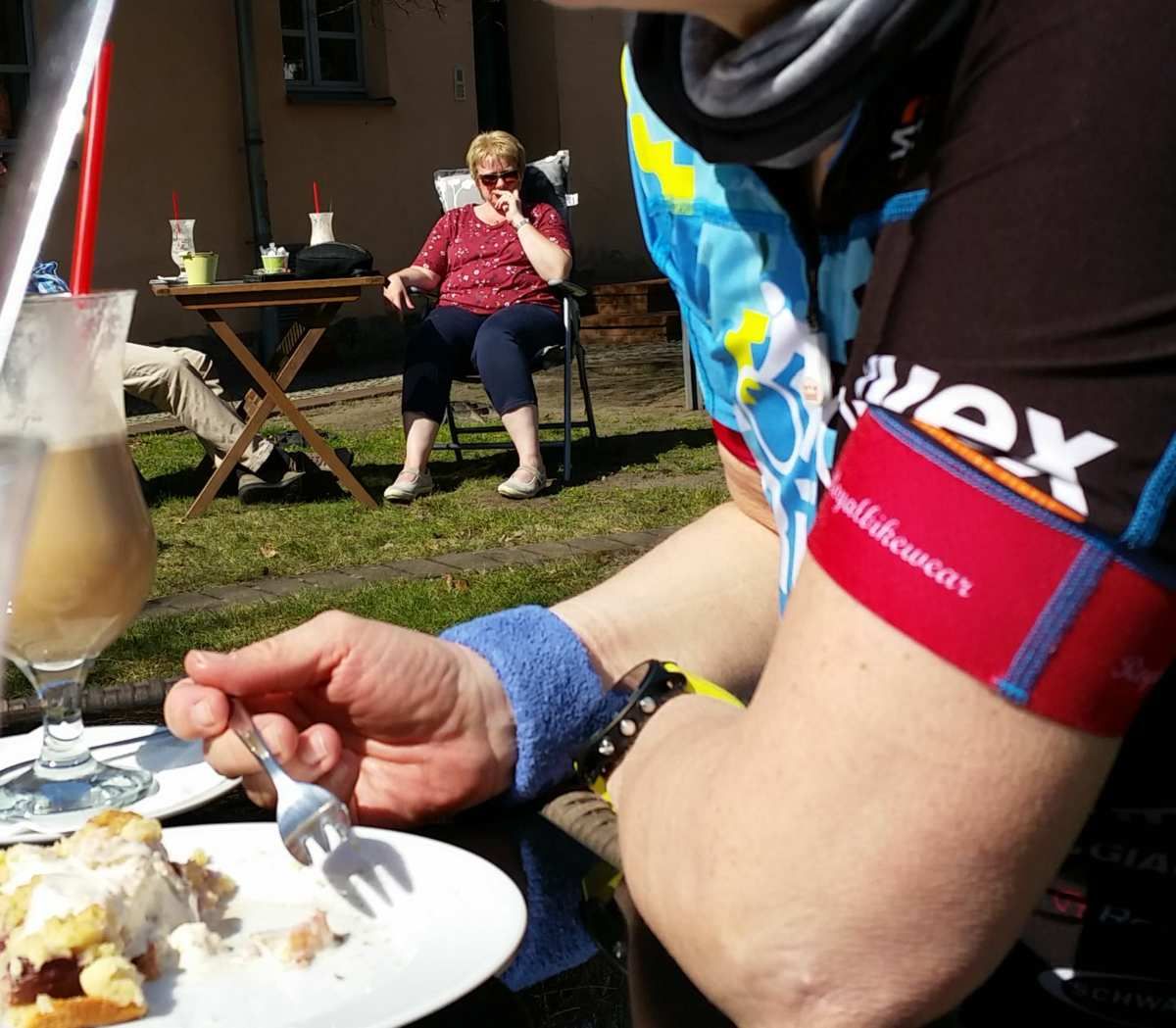 Kurz, so ungefähr 20 Kilometer vor dem Ziel, machten wir noch einmal Rast und gönnten uns einen Eiskaffee und ein Stück Pflaumenkuchen.