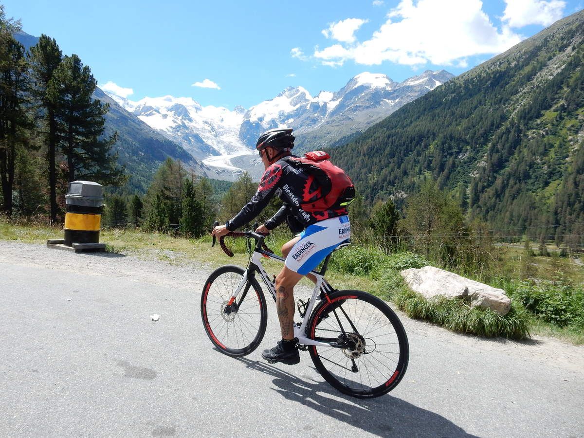 Pizza, Eis und dann, so weit regeneriert, in Richtung St. Moritz mit einen Rennrad zurück.