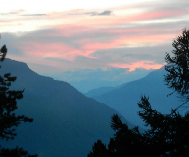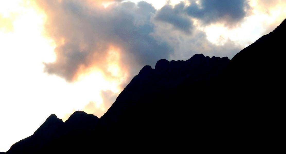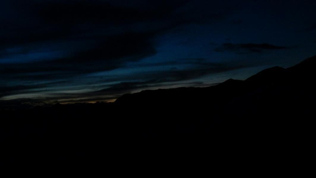 Risotto-?-,begann dann im Licht unserer Stirnlampen ab ca 2.739 Meter Höhe ein ungewisser Abstieg über Geröll- und Felsenfelder. Der Mond erleuchtet die hinter uns liegenden Berge.
