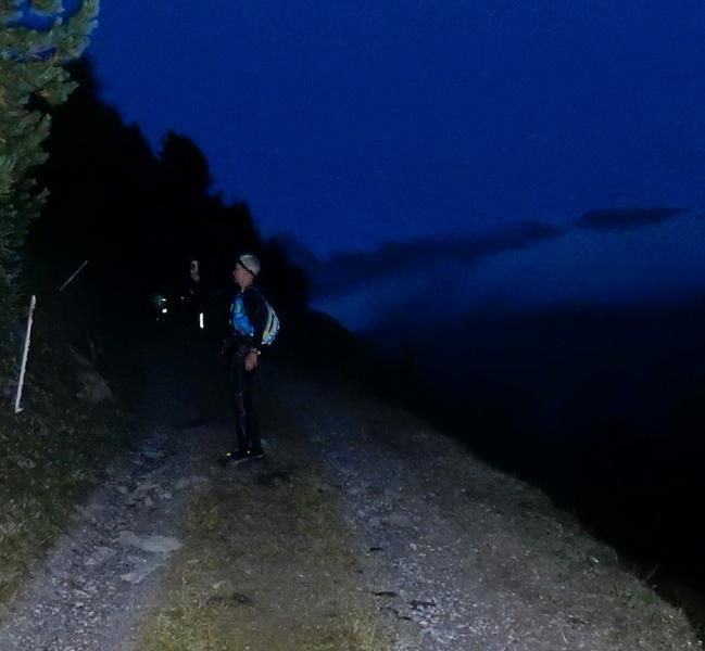 Ok mit Stirnlampe laufen, keine Hürde. Der Weg war mit den Stirnlampen gut zu erkennen.