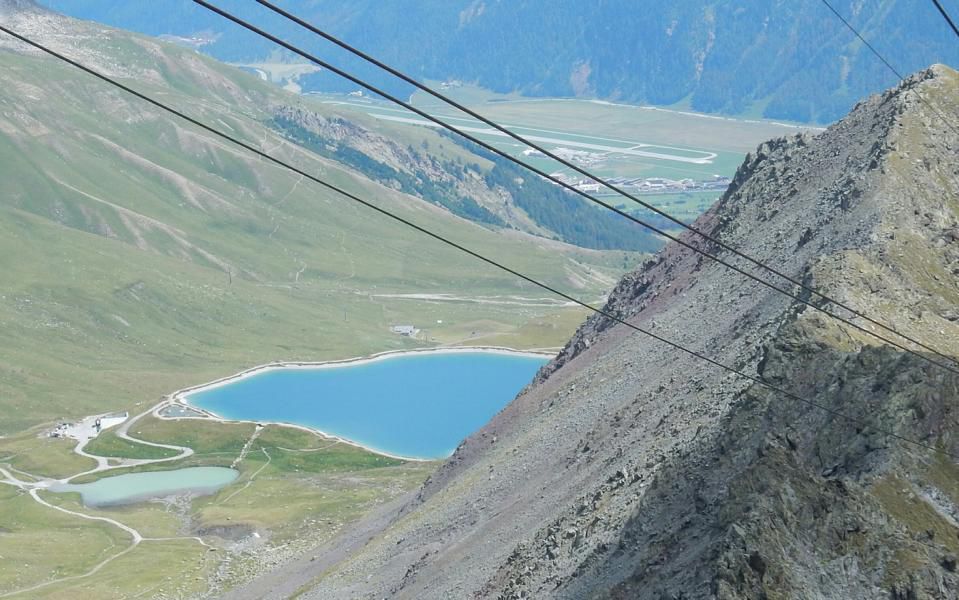 Kurz vor Schluss der letzten Berghochfahrt sind wir mit Gletscher Bahn, der Bernia Diavolezza, auf 2978 Meter hochgefahren und haben den ebenfalls sterbenden/abschmelzenden Gletscher bestaunt.