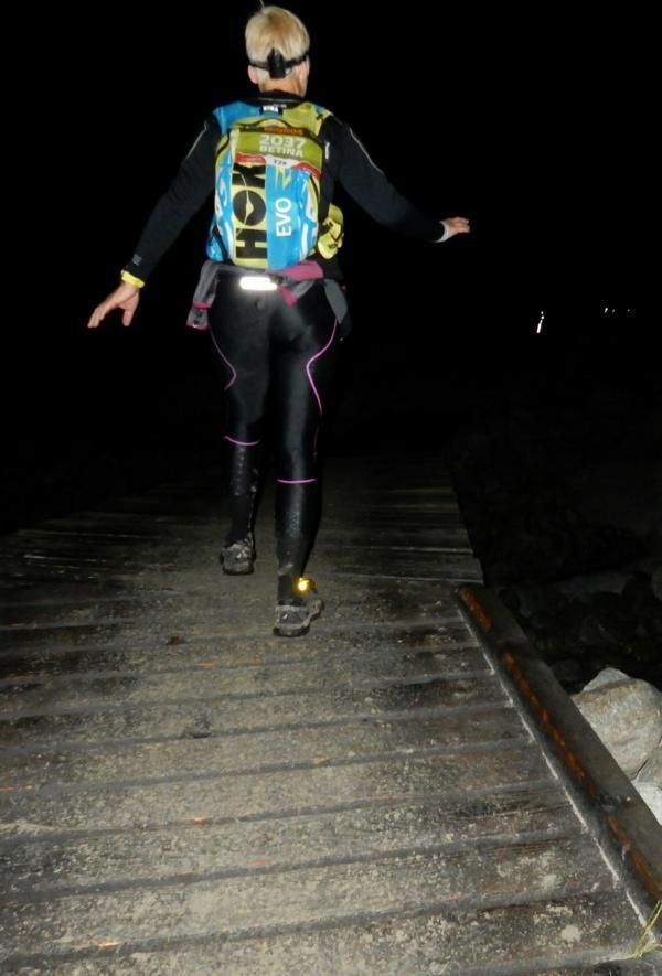 Zum Glück konnte man sich ansatzweise an den aufgestellten Leuchtbändern orientieren oder zumindestens an den Lichtern der Läufer erahnen, dass man noch in die gleiche Richtung läuft.