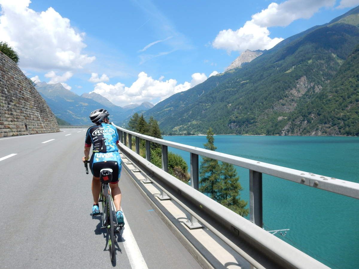 Mit ausgeliehenen und von Spartarifen ausgeschlossenen Rennrädern (Scotti mit Scheibenbremsen) vom Olympiazentrum aus (7 Gehminuten vom Hotel), fuhren wir mit stetigem Anstieg entlang einer von Komoot vorgeschlagenen Route der Bundesstraße folgend, bis zum Pass Bernia in über 2000 M Höhe.