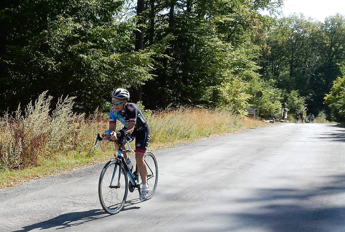 Kurz vor dem Brocken in der 90 Grad Rechtskurve, konnte ich auf 2 oder 3 Meter keine Kraft in die Pedale bekommen und musste ca. 200 Meter das Rad schieben.