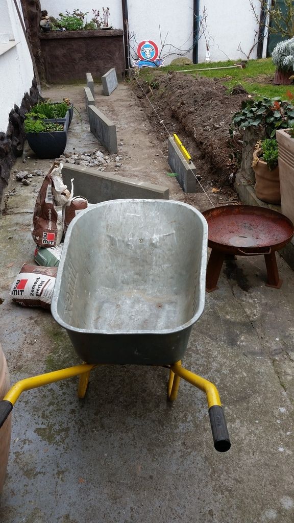 Betonbegrenzungsringe wegräumen und Bordersteine setzen.
