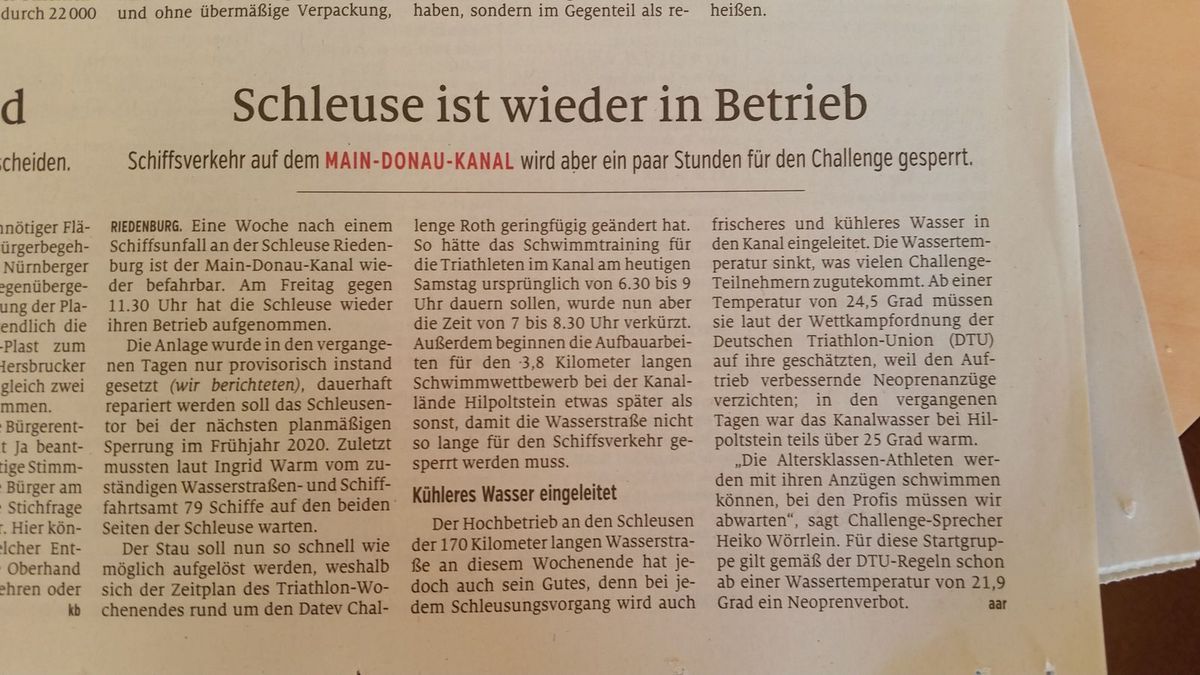 Fünf Stunden Schlaf sind anscheinend genug. Kein Wecker. Aufwachen von allein. Und das an einem Montag. Verrückt. Alles etwas behäbig. Keine Beschwerden. Kein Muskelkater. Lief ja gut gestern. Frühstück gibt es später im Festzelt bei der Siegerehrung. Gehe vorher mal zur Schlange für die Anmeldungen 2020 vorbei. So lang wie erwartet. Die Ersten stehen schon seit gestern nach dem Zieleinlauf der Profis hier. Das gehört dazu. Ebenso wie das Frühstück, das für die Wartenden verteilt wird. Auf ins Festzelt. Frühstücken und Siegerehrung. Ein paar Fotos noch und ein letztes Dankeschön für das Ding mit meiner Startnummer letztes Jahr. Zurück zum Auto und alles für die Abfahrt bereit machen. Alles mit viel Ruhe. War schön hier. Aus einiger Entfernung kommt eine Frau auf mich zu. Das Gesicht kennst du irgendwoher. Es macht klick. Freitag bei der Startnummernausgabe. Naja, da bleibt was hängen; nicht nur bei mir. Aber schön, wenn man auch anderen in Erinnerung bleibt. Warte noch auf meine „Nachbarn“. Werden uns mit Sicherheit wiedersehen. Einige werden die Rolle wechseln und nicht mehr Zuschauer oder freiwillige Helfern sein, sondern als Athleten den Tag auf der Strecke verbringen. Abfahrt gen Heimat ...