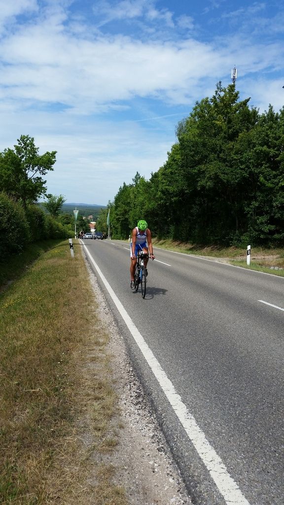 Etwa 70 km sind geschafft. Das Ortseingangsschild verheißt Hilpoltstein. Was gleich kommt, hast du schon vor zwei Jahren erlebt; als Zuschauer. Der Schädel dröhnt davon noch immer. Lange Gerade und noch einmal Gas geben. Die Absperrgitter stehen links und rechts. Ausrollen und in eine leichte Rechtskurve. Solarer Berg. Es wird laut. Die Bekloppten und Irren sind heute genau hier. Nur ein paar hundert Meter. Die Absperrungen enden und die Zuschauer stehen Spalier. Kaum Platz. Teilweise erst in letzter Sekunde. Ein Hauch von Alp d’Huez. Der Anstieg unscheinbar und eigentlich kaum der Rede wert. Eigentlich. Mal wieder. Geh aus dem Sattel, auch wenn es später wehtun könnte. Die Zuschauer belohnen das allemal. Auch deshalb wollen alle hier hin. Da es zwei Runden mit dem Rad sind, wird es hier später noch einmal hinauf gehen. An der Strecke sind noch weitere Hotspots, die es den Athleten leichter machen besonders fiese Anstiege zu überstehen. Am Ende oder kurz danach befinden sich meistens auch Verpflegungsstationen. Alles genau abgestimmt.
