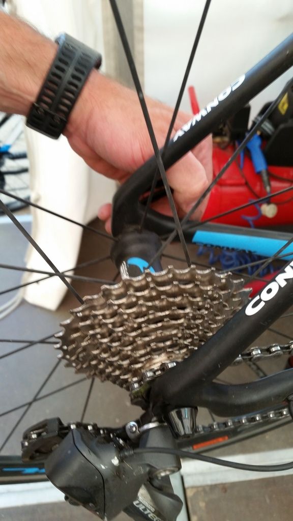 Betina bekam, da ihr Rad einen Platten hatte, den Schlauchwechsel erklärt und anschließend rüsteten wir unsere Räder mit zusätzlichen Flaschenhalterungen für Getränke aus.