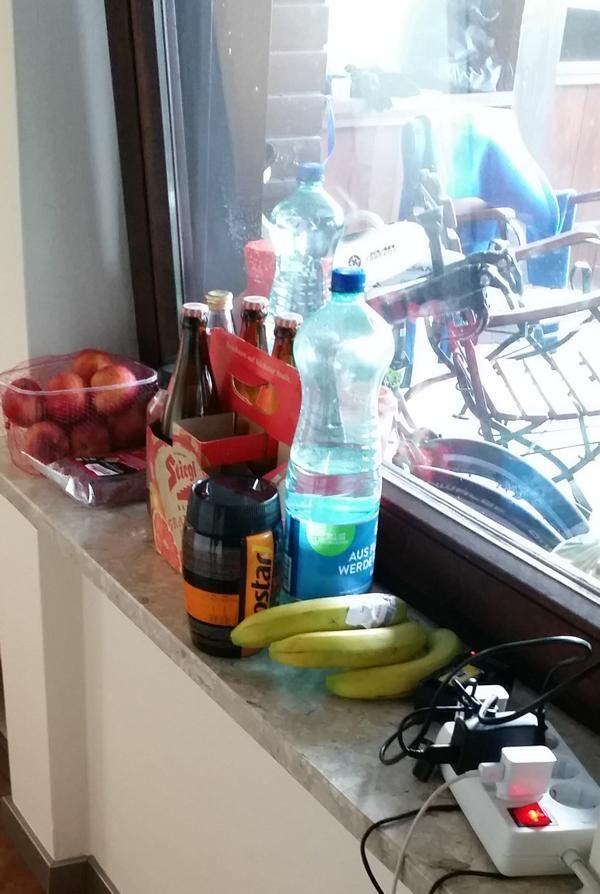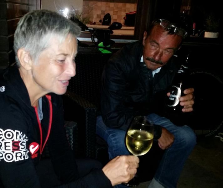 Da wir erst die Slotvergabe abwarteten und dann die Räder holten, waren wir erst kurz vor Mitternacht in der Unterkunft. Unsere Zimmernachbarn wurden noch auf ein Gläschen Wein eingeladen.