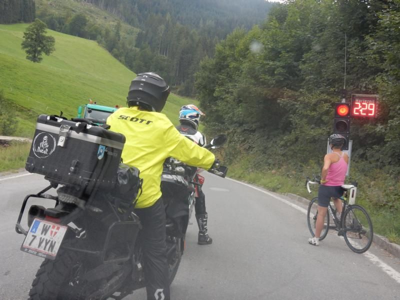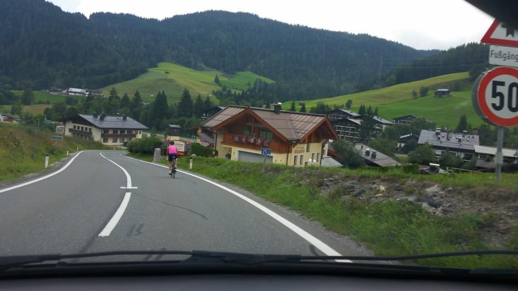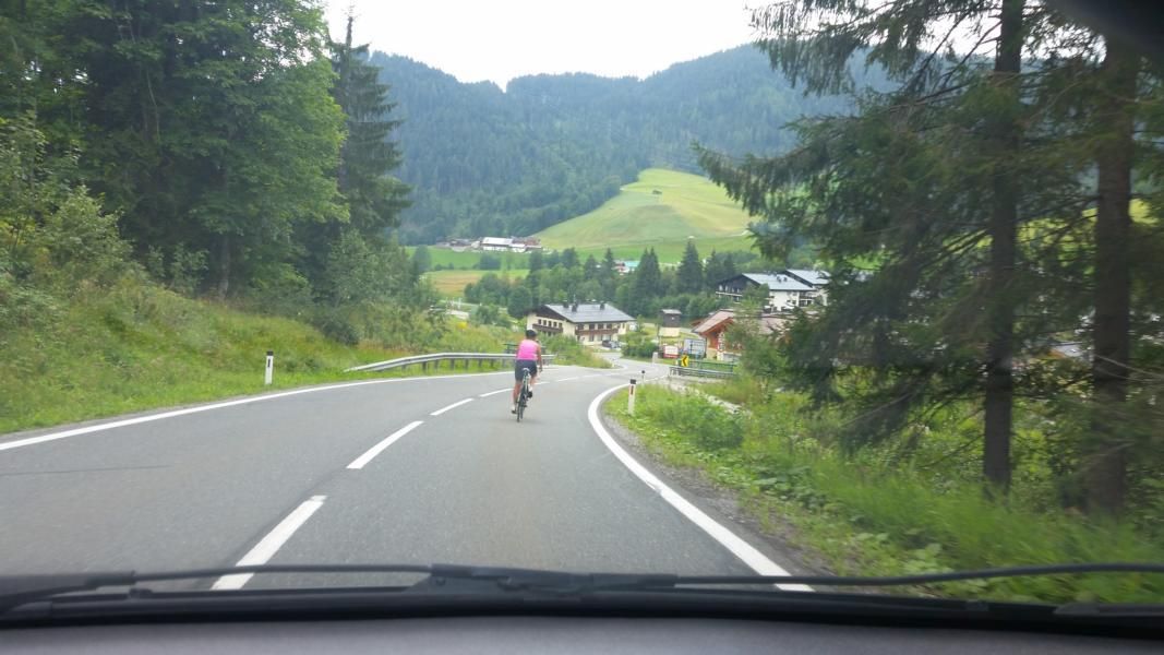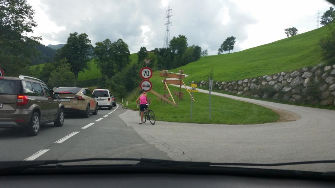 Zwei Tage vor dem Wettkampf musste ich Betina, mit Auto und Warnblinkanlage hinter ihr, sie den Filzensattel hinunterfahrend begleiten!