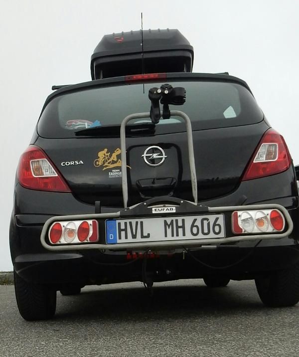 Das neue Wägelchen und mein Rad glänzen und beide freuen sich auf die erste längere Tour mit einem Dachkoffer.