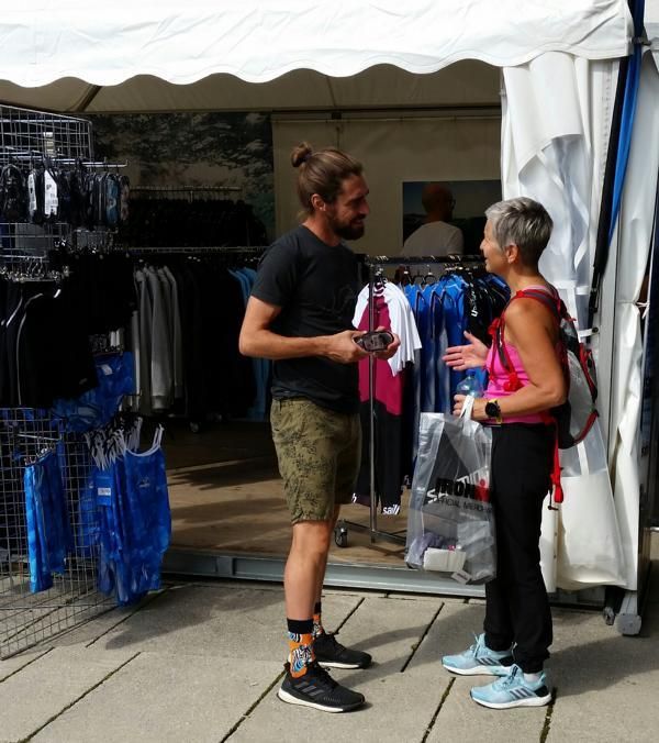 Hier trafen wir unsere Leute aus dem Trainingslager, u.a. auch Manuel, der natürlich am Stand Geld verdienen musste.