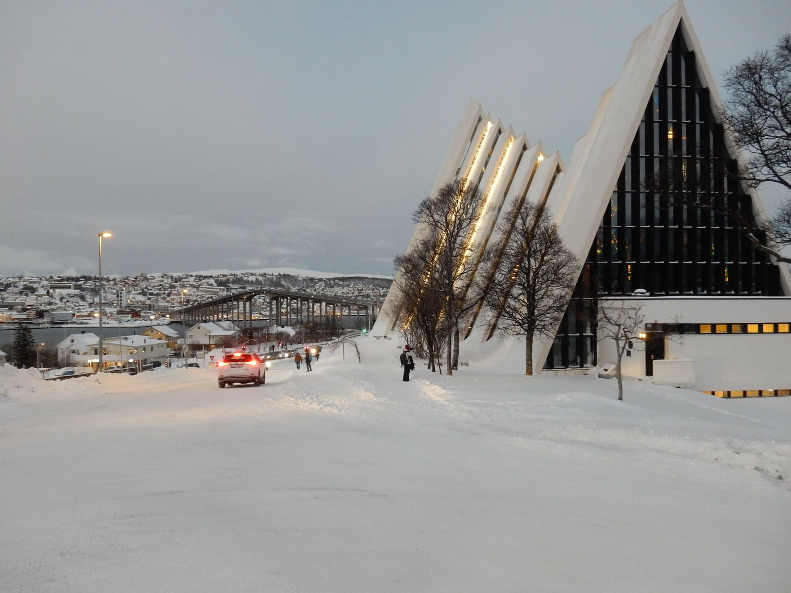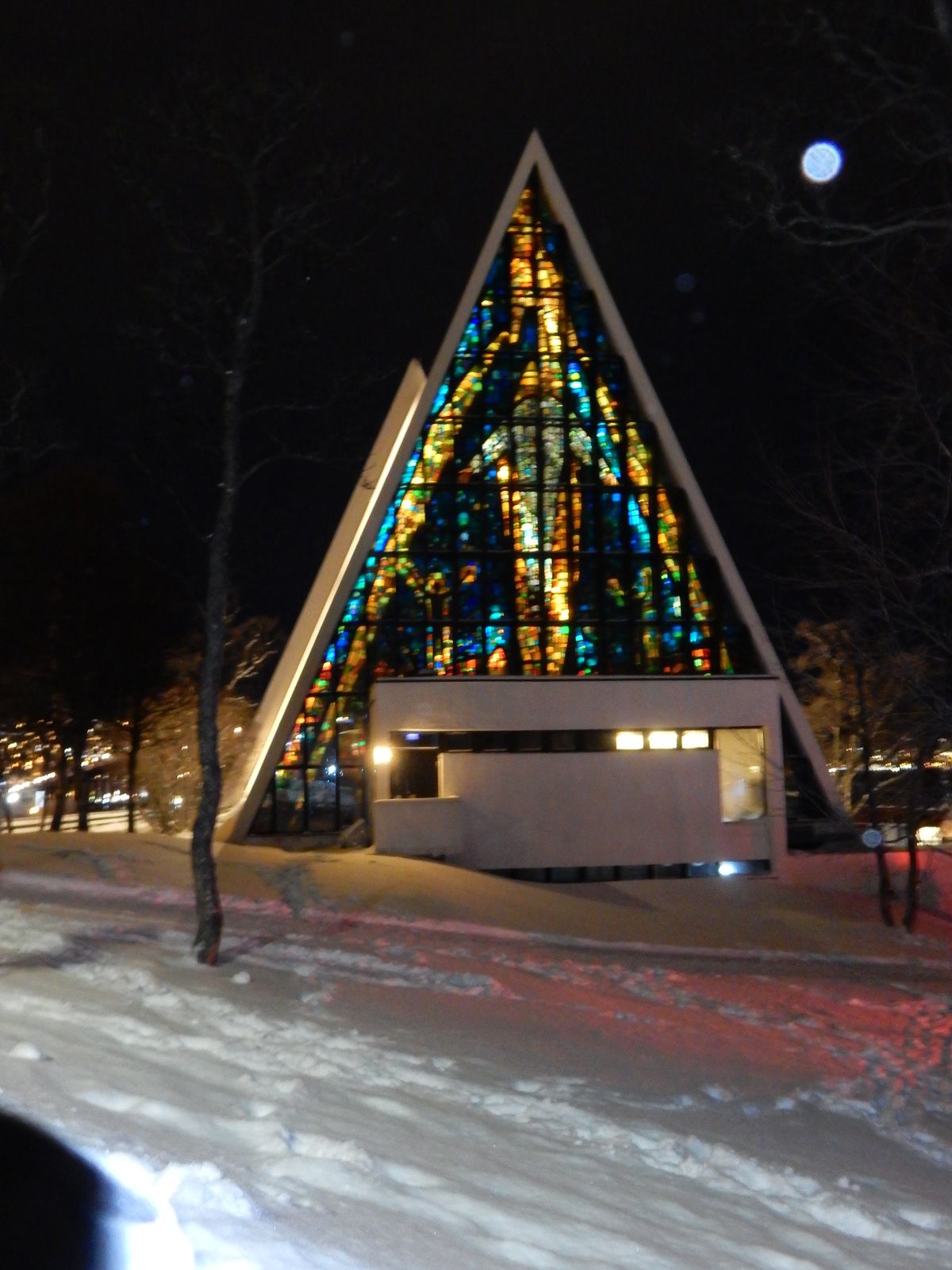 Die Eismeerkarthedrale - die Tromsdalen Kirche, ist weithin sichtbar und beeindruckend. Vor allem die Glasmalerei ist beeindruckend.