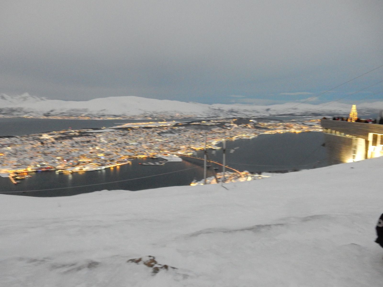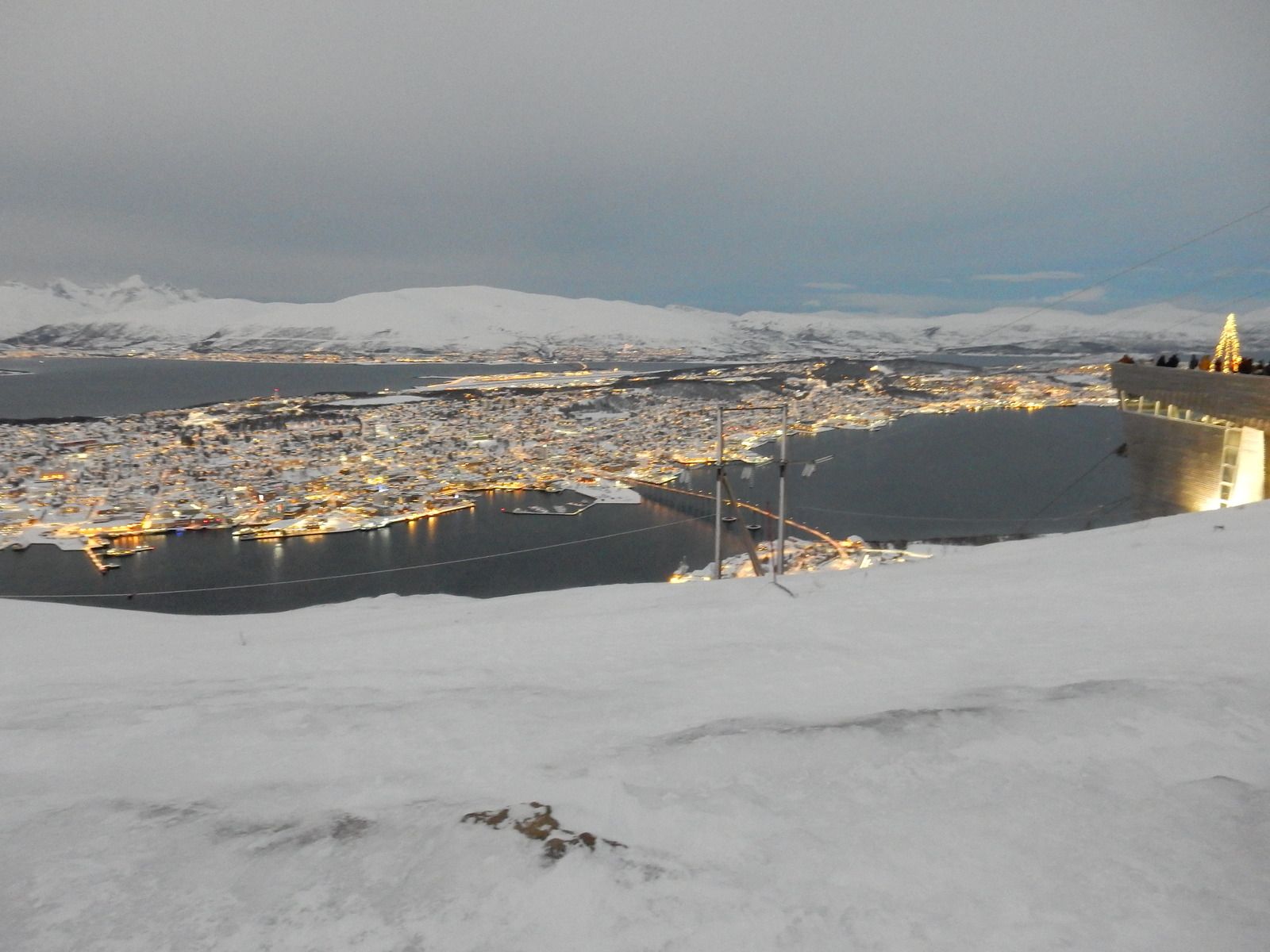 Am Sonntag waren wir auf dem Hausberg, sind zuvor über die lange, bekannte Brücke gelaufen, die man auf fast jedem Foto von Tromsö sehen kann und über die auch der Marathon im Sommer verläuft. Auf dem Hausberg lag gut Schnee und uns erwartete eine tolle Winterlandschaft und eine famose Aussicht auf die Stadt: siehe folgende Bilder