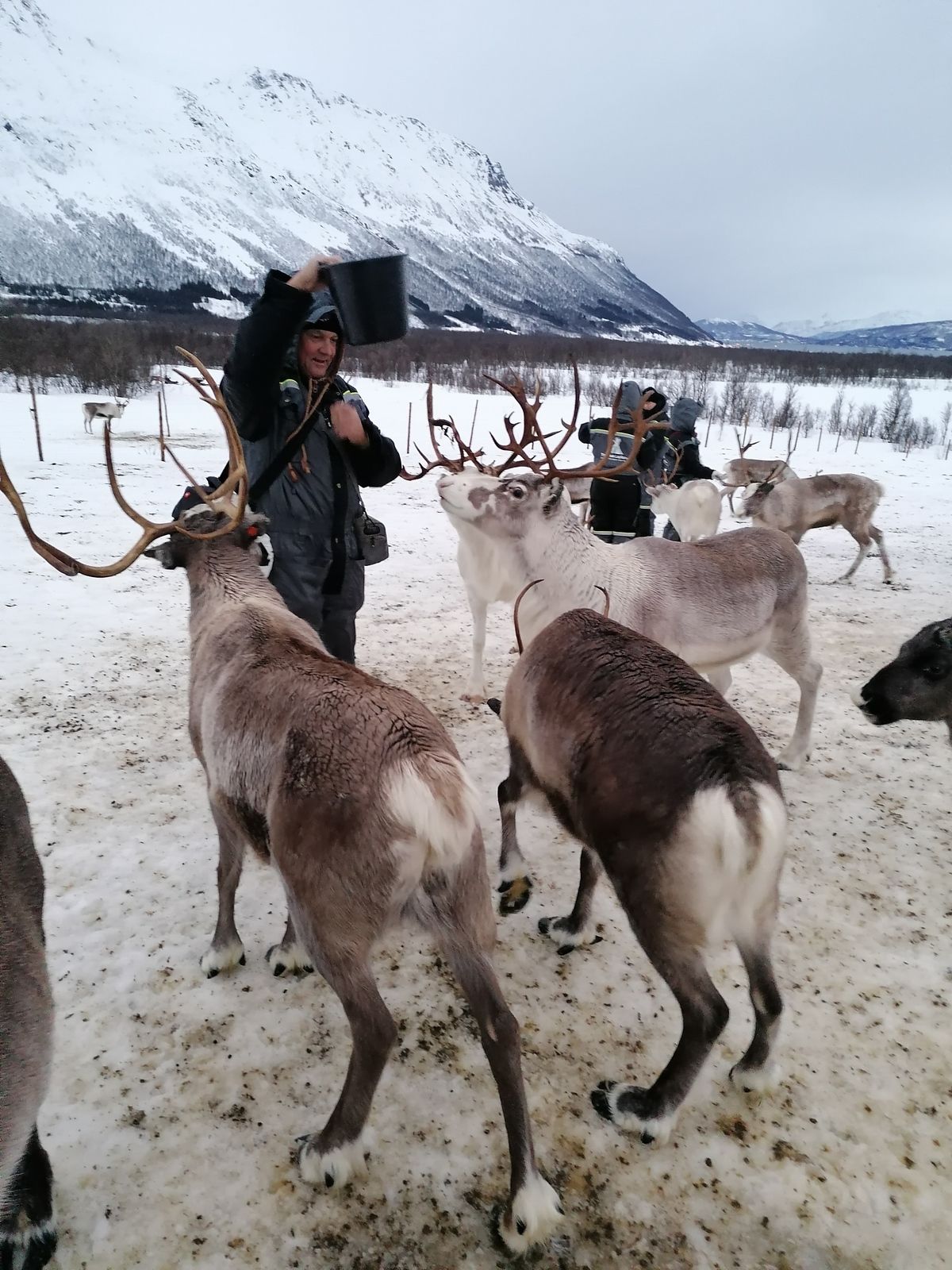 Nach ca. 30 Minuten konnten wir die Rentiere füttern.