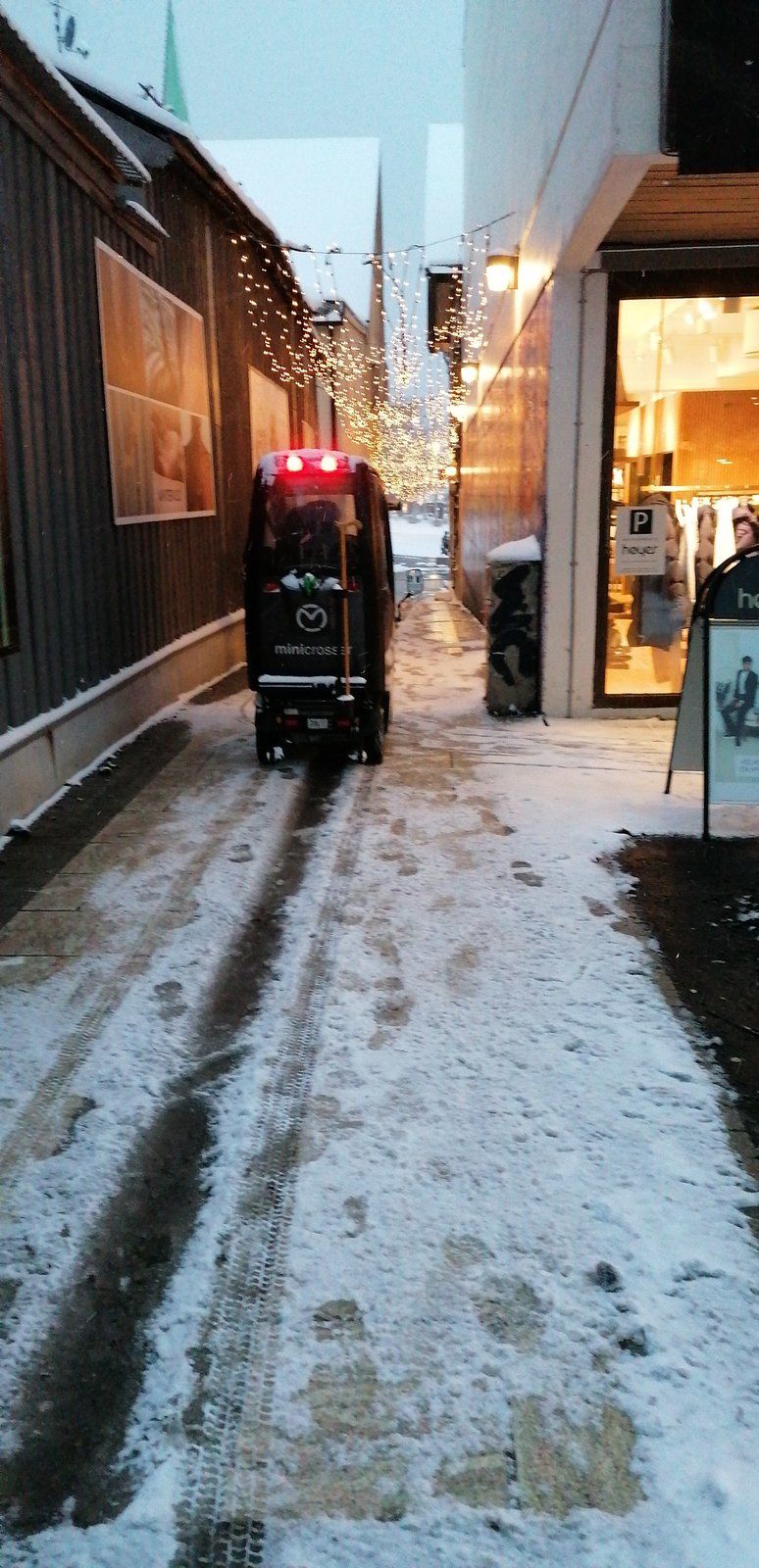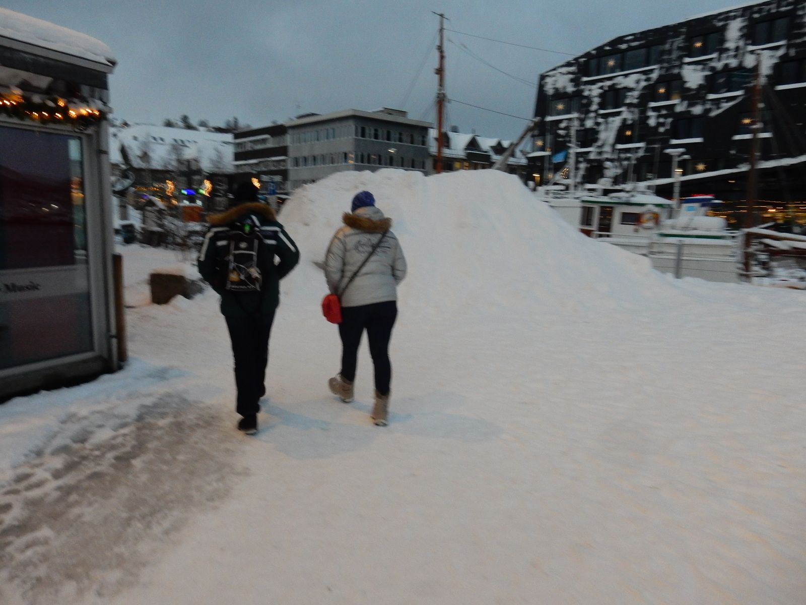 Zu unserem Erstaunen sind einige Fußwege beheizt und deshalb frei von Eis und Schnee.