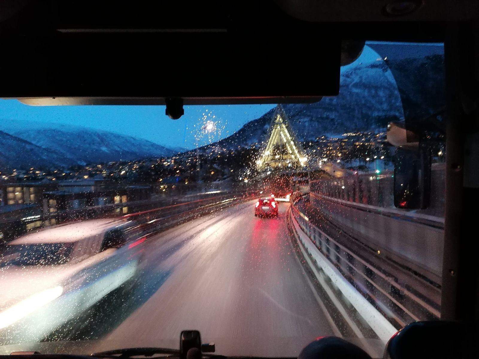 Tromsö (o wird mit einem / durchtrennt) ist die größte Stadt nördlich des Polarkreises und besitzt die nördlichste Uni, die nördlichste Brauerei, die nördlichste Kathedrale der Welt.