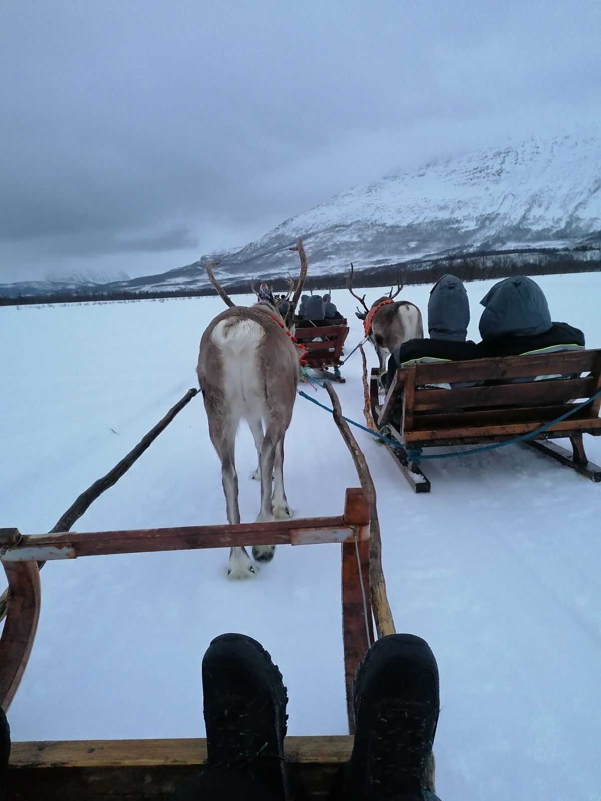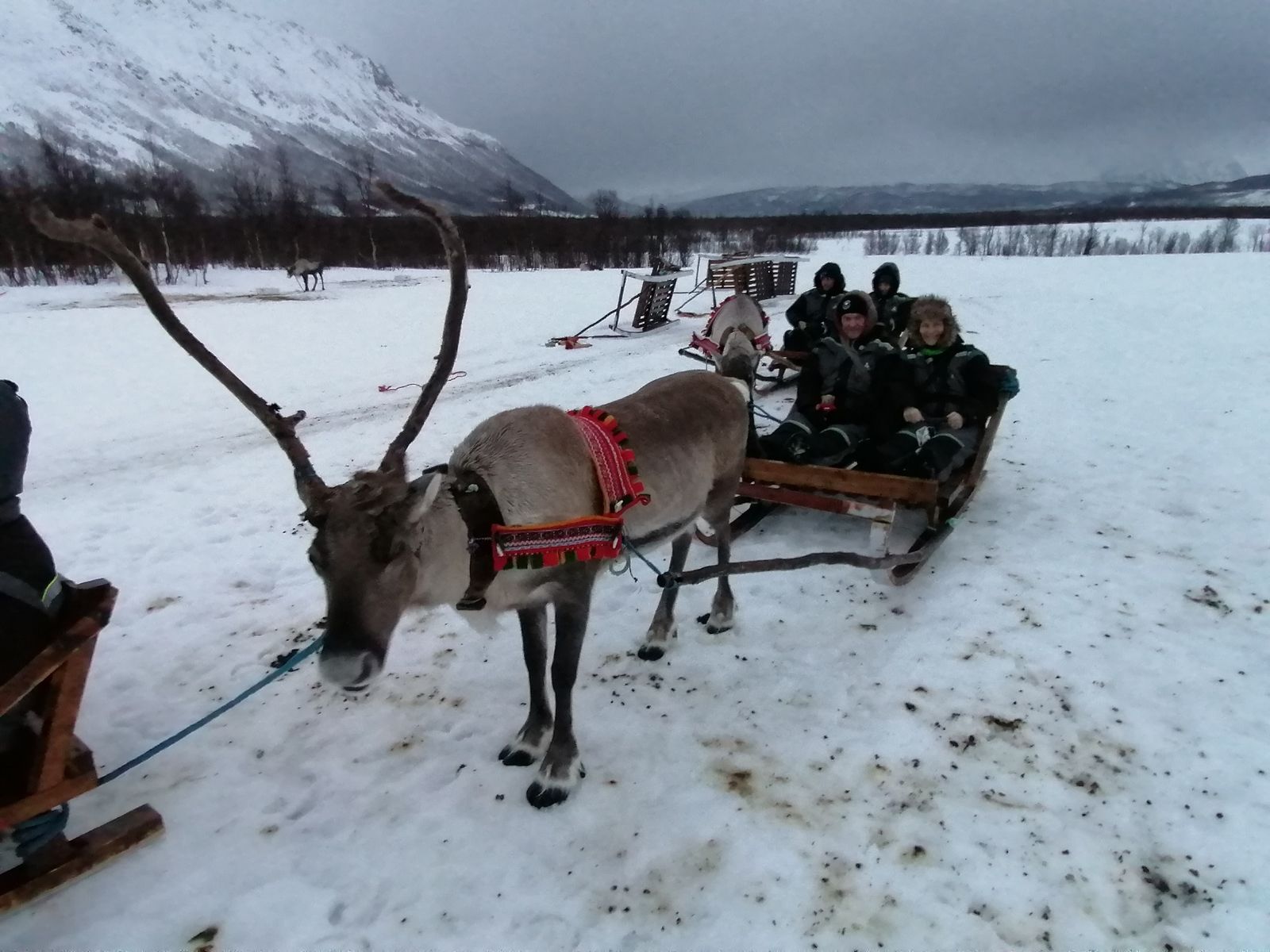 Das Camp der Samen liegt im Landesinneren, etwa 60 min mit dem Reisebus von Tromsø entfernt. Warme Kleidung wird zu Beginn zur gebuchten Aktivität ausgegeben. Dies war auch erforderlich, denn es fing leicht zu regnen an.