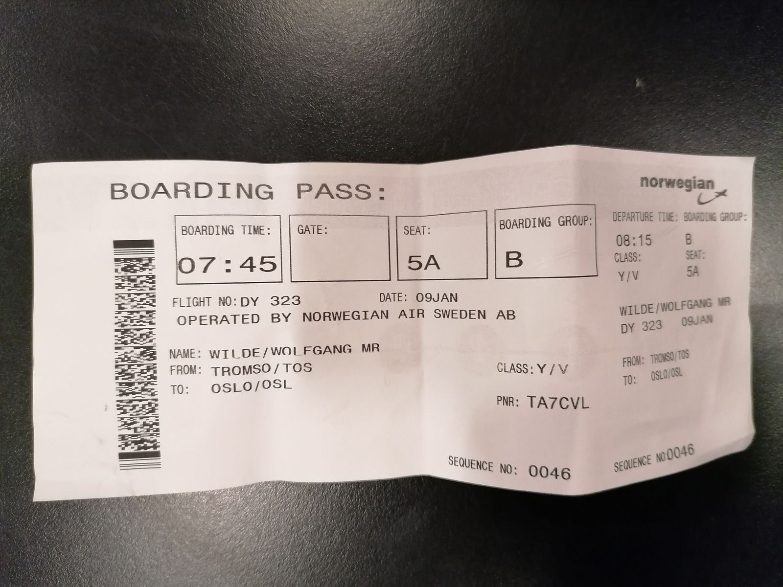 Umsteigen in Oslo und Ankunft gg. 17:00 in Tromsö.
