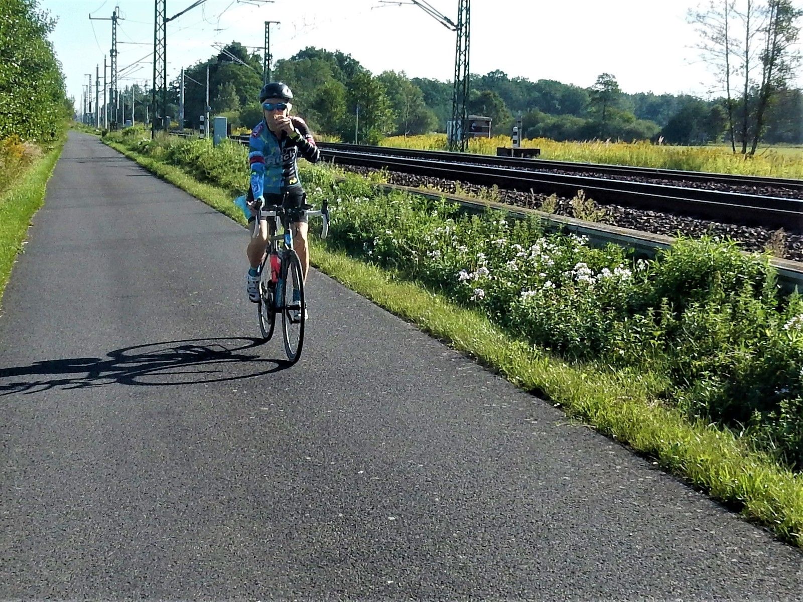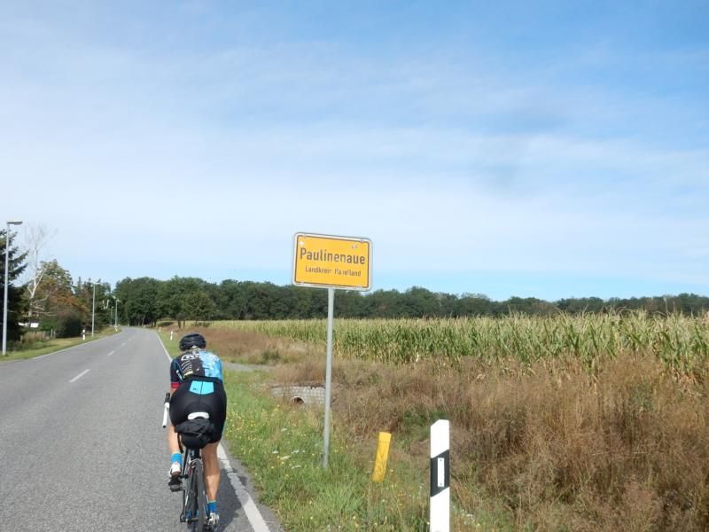 Schönwalde Dorf wurde auf dem Radweg angesteuert, dem Havelradweg entlang nach Paaren, Nauen, Ribbeck und von dort bis Ortsmitte von Paulinenaue. Dann die gleiche Strecke mit kurzem Halt in Ribbeck. Nachdem wir die Kühe begrüßt hatten ging es bis Perwenitz. Dort gab es einen Schlauchpanne und Mantelriss. Schlauch hatte Betina und ich einen 2. neuen Mantel. Nach 15 Minuten ging es dann weiter.