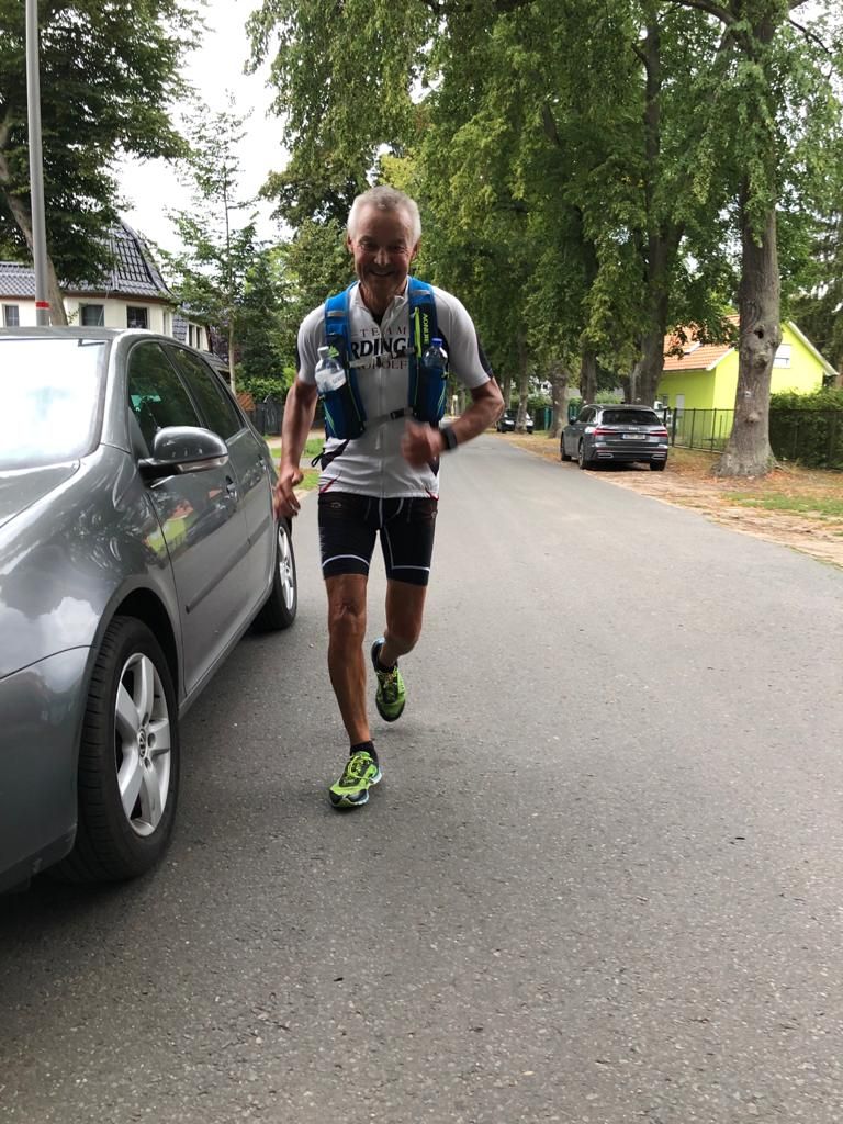 Der frühe Vogel...2 Seerunden um den Falkenhagener See zum Warmlaufen. Eigentlich wären 1.9 Km Schwimmen fällig gewesen.